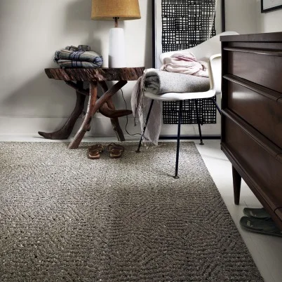 My favorite company that offers modular carpet tiles is of course FLOR. They can be used to create an area rug, or used in wall to wall applications. I've installed them myself in a room that had a live edge waterfall countertop, which could have made for tricky trimming. But the tiles were so easy to cut and lay down there were no issues. The owner loved it and I did too!